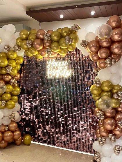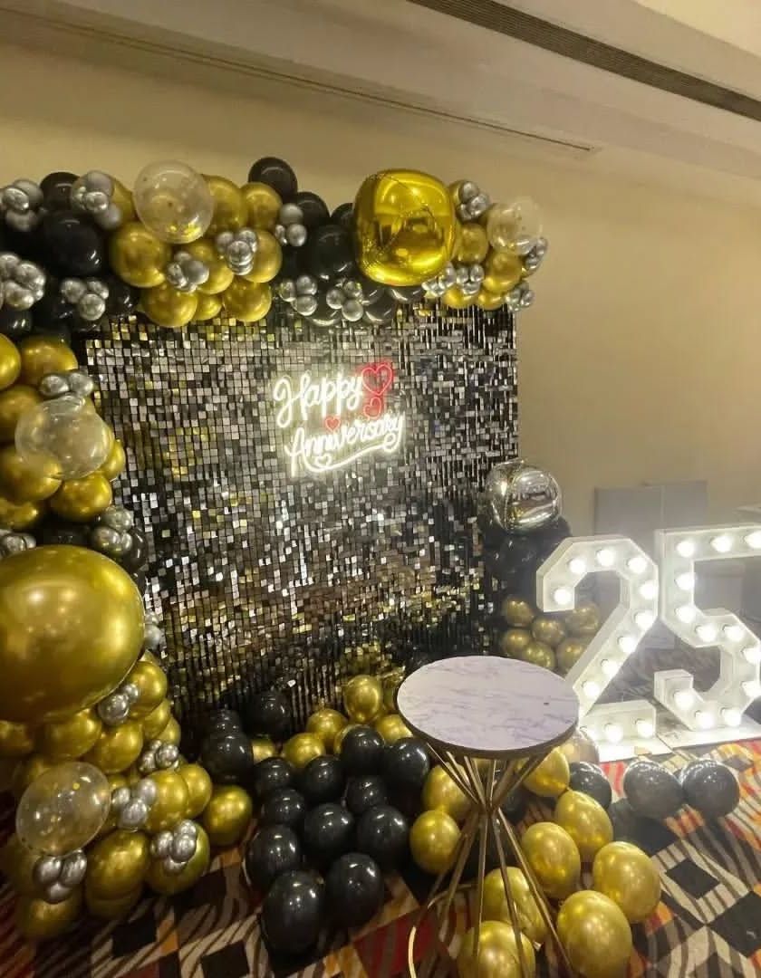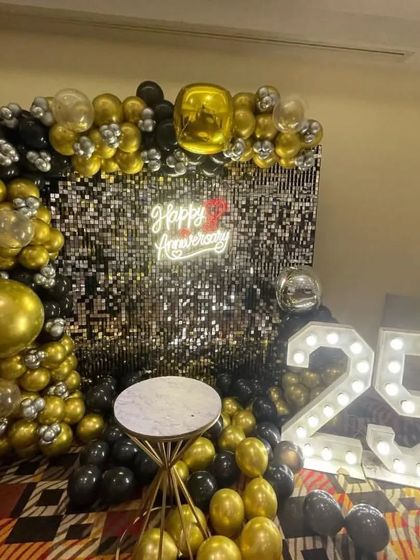 Celebrate your milestones with a special touch. I design romantic and elegant backdrops for anniversaries, featuring balloon rings, marquee numbers for the years, and "Happy Anniversary" or "Better Together" neon signs.