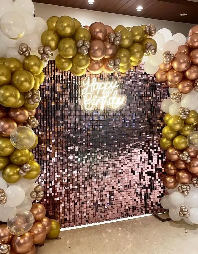 Add a touch of glamour with a sparkling sequin wall, the perfect backdrop for photos. I have them available in gold, silver, rose gold, and other colors to match your party's theme for birthdays, anniversaries, or any special event.