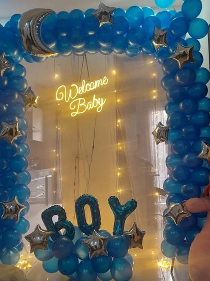 Welcome the newest member of your family with a beautiful decoration. I create sweet and memorable setups for baby showers and welcome-home parties, including "Welcome Baby" signs, balloon boxes, and color themes for boys and girls.