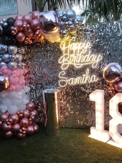Take the party outside with my special terrace and lawn decorations. I offer cabana-style seating with fairy lights for a cozy vibe, as well as full balloon backdrops perfect for outdoor celebrations.