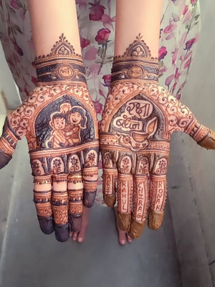 I create custom mehndi for all of life's happy moments, not just weddings. I design unique art for festivals like Karva Chauth, Rakhi, and Janmashtami, as well as for special events like a baby shower (Godh Bharai).