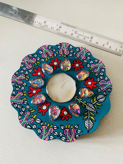 Handmade psychedelic art for everyday - I make psychedelic toran, wall decor, hand-painted wooden bangles, custom clay jewelry, paperweights, festive rakhis.
