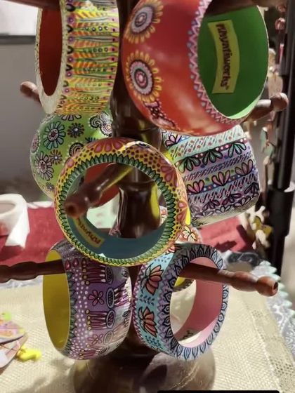 My art isn't just for your walls. I also create wearable pieces like hand-painted bangles and juttis, as well as other unique items like paper buntings. Everything is made with the same colorful, psychedelic style and lots of love.