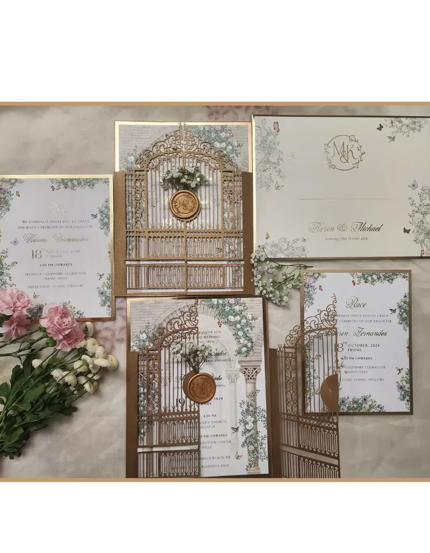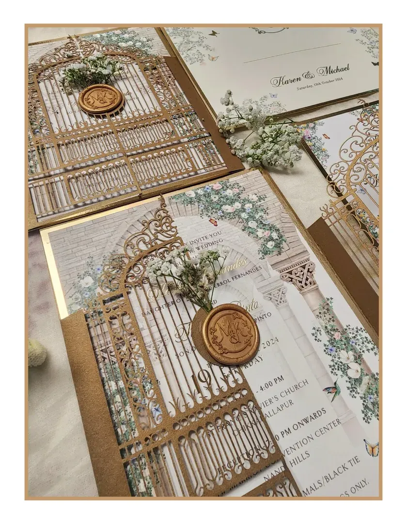 This is the first glimpse into our world of bespoke stationery. We've selected these pieces to showcase the heart of our craft: intricate details, personal stories, and a range of styles from fairytale romance to modern elegance. Each invitation is a keepsake, the first chapter of your celebration.