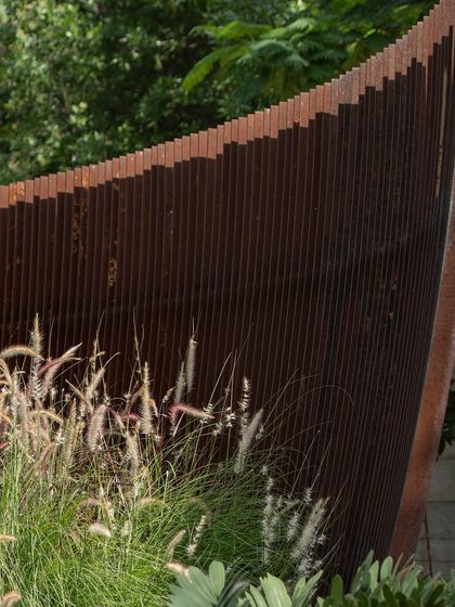 Sculptural Approach - We use materials like corten steel, stone, and metal mesh, integrating custom sculptures for sculptural landscape design.