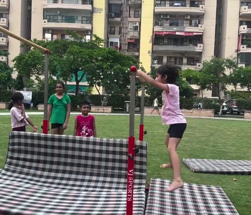 Our main center in Sector 16 is fully equipped with professional-grade mats, beams, bars, and a trampoline. It's a safe, clean, and motivating space where champions are made.
