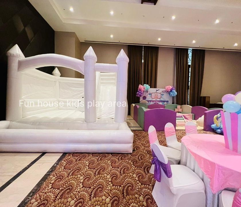 Add the ultimate element of fun with our selection of bouncy castles and inflatables. We offer the popular and aesthetically pleasing all-white bouncy castle, which can include features like a slide, climbing area, and ball pit, perfect for any theme.