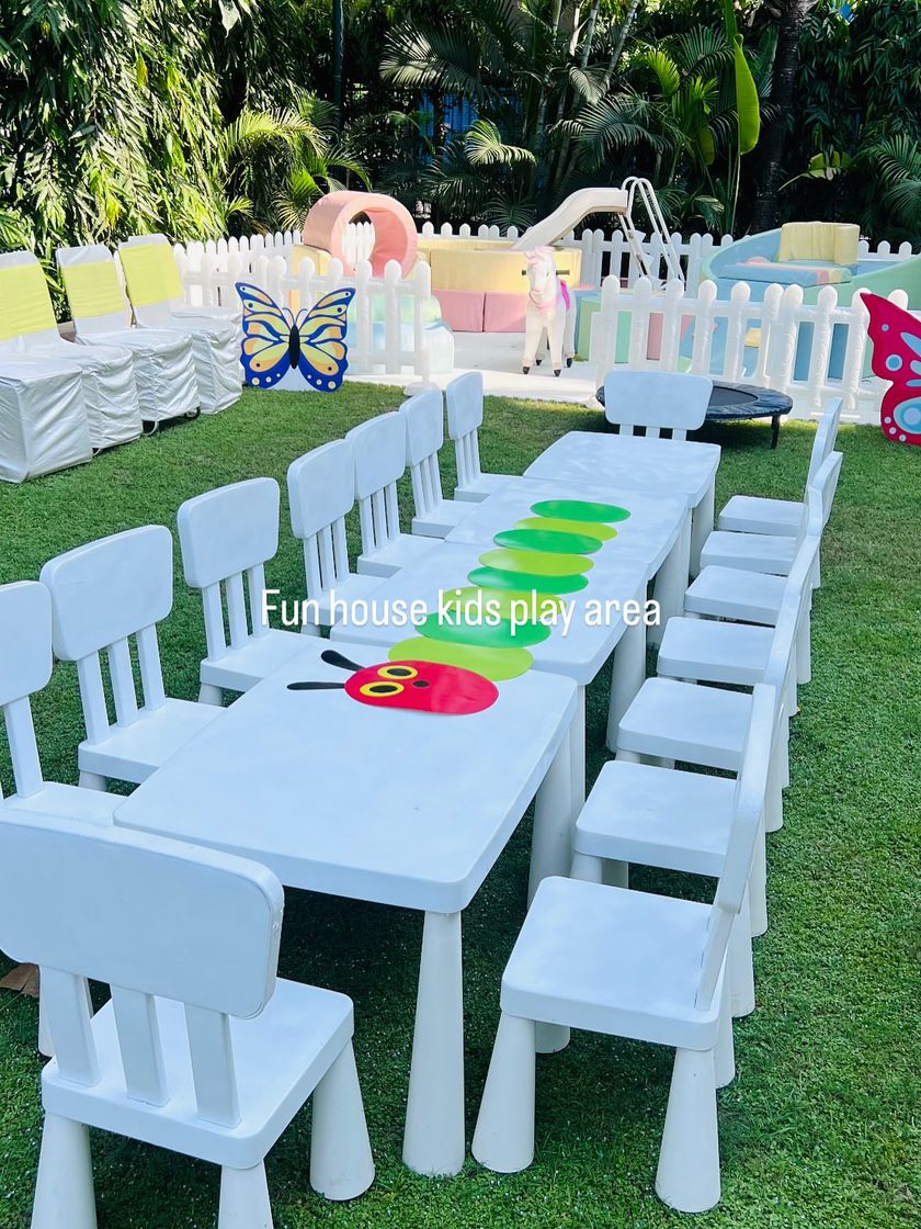 Complete your kids' party zone with our range of furniture and fun add-ons. We provide kid-sized tables and chairs, sand pits for sensory play, and even bubble houses to create a truly unforgettable event.