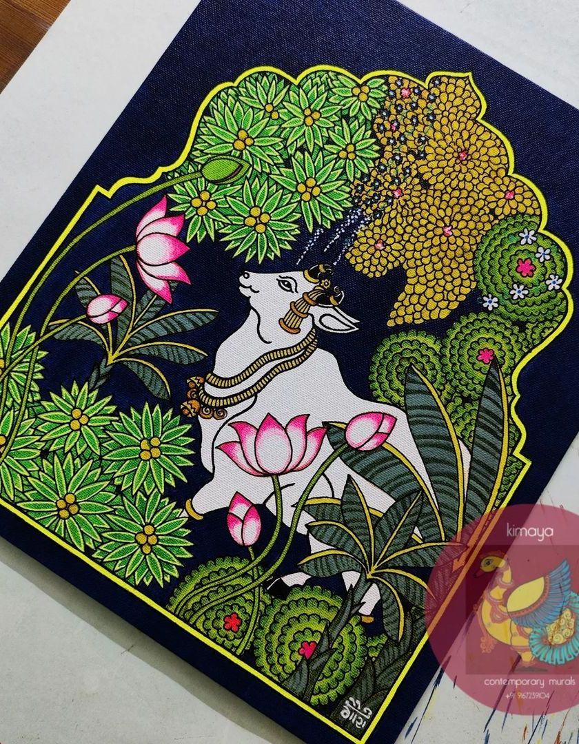 Explore my passion for traditional Indian folk art, from serene Pichwai cows to dynamic Dasavataram narratives. I often blend styles, like Phad and Patua, to create unique custom pieces that honor heritage with a fresh perspective.