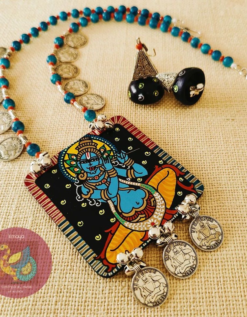 This collection is my offering of devotion, featuring hand-painted depictions of gods and goddesses. Each necklace set is created with spiritual intention, using specific colours and elements like rudraksha beads and brass ghungroos to honour the divine energy of figures like Lakshmi, Shiva-Shakti, and Krishna.
