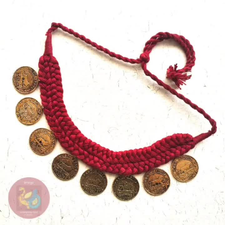 In addition to my painted collections, I also create handcrafted jewellery that focuses on texture and materials. This collection features necklaces made with threadwork, metal coins, colourful beads, and mirror work, offering a different style of handmade beauty.