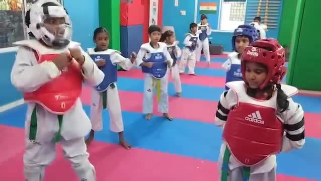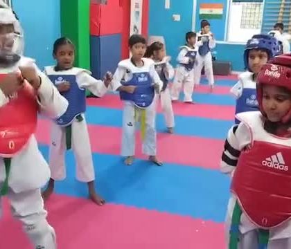 Our Kyorugi program focuses on Olympic-style sparring with full protective gear. We teach smart, fast, and effective fighting techniques through realistic match drills, footwork, and combination kicking.