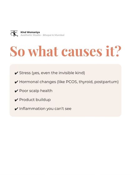 Hair fall is more than just strands on your brush. It's often a sign from your body about hormonal shifts like PCOS or postpartum changes, stress, or scalp health issues. We help you understand the root cause, so we can find a real solution together.