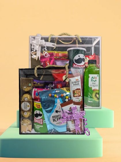 - Customized wedding gift hampers—totally flexible. Want Pringles, Ferrero Rocher, Paper Boat? Done. You can even add your own nameplates. Pick from mini to jumbo sizes.