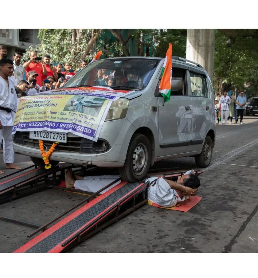 Since 2001, I have dedicated my life to pushing the limits of human endurance to bring glory to our nation. These records, from having 21 cars pass over my stomach to smashing 166 cement blocks with my head, are a testament to discipline, commitment, and the power of Bharatiya kala.