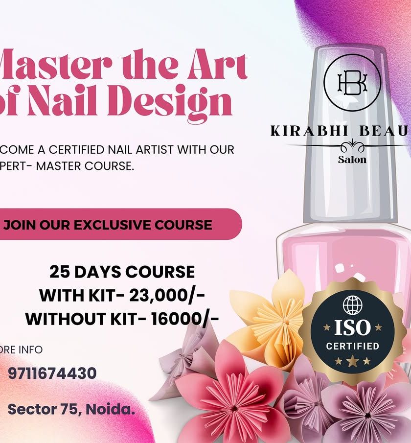 Turn your passion for nails into a career with my 25-day master course. You will get hands-on training and graduate as an ISO Certified Nail Artist, fully prepared for the beauty industry.