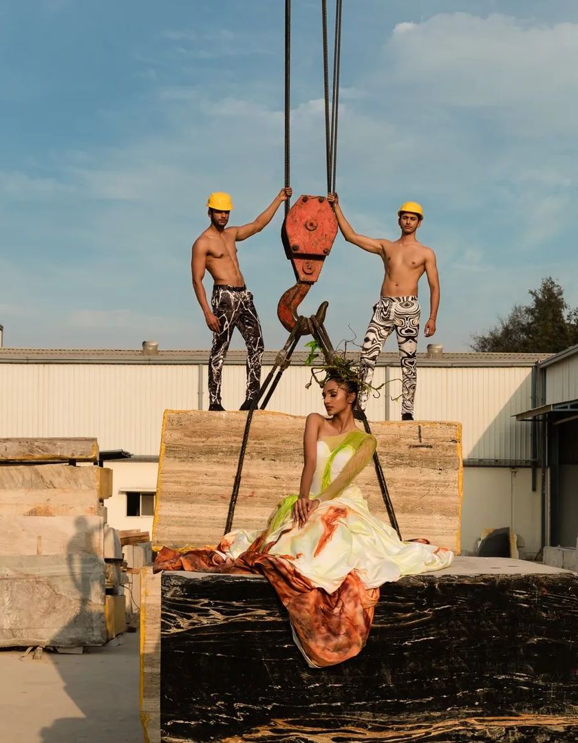 I specialize in creating bold, narrative-driven images for magazines and brand campaigns. These shoots often involve unique locations, like a marble factory, and elaborate styling to produce high-fashion, conceptual work that stands out.