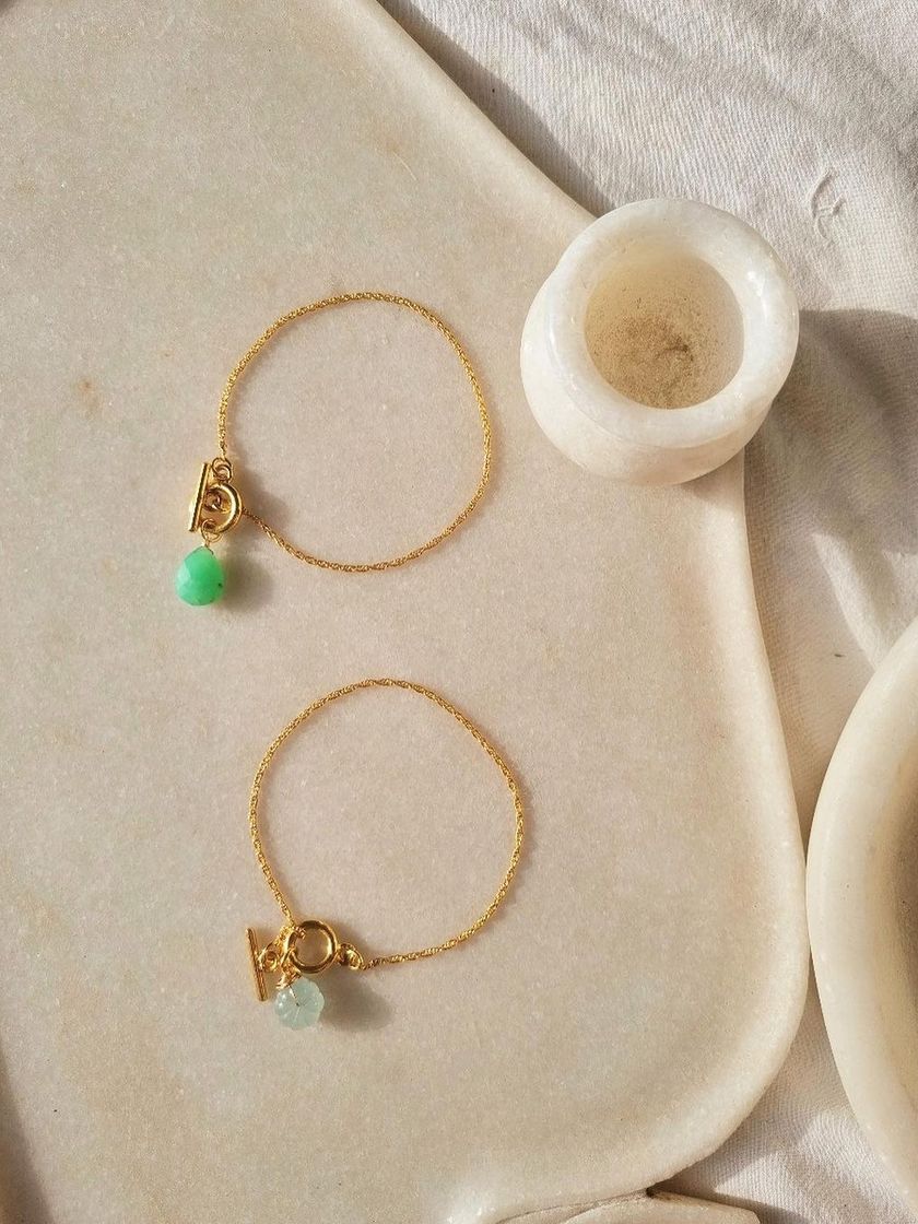 Discover my collection of handmade pieces to adorn your hands. Choose from personalized initial bracelets in Peach Moonstone, elegant toggle bracelets in other healing stones, or minimalist rings designed to bring you peace.
