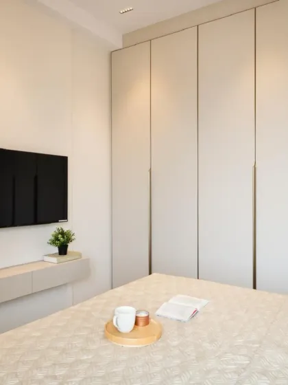 We design custom wardrobes and closet systems that maximize your space, use premium European hardware, and fit your routines with options like walk-in closets, built-in dressing units, and media integration.