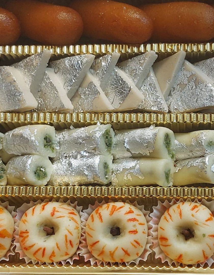 We make traditional Indian sweets the old-fashioned way, using pure desi ghee and fresh ingredients. Our mithai range includes everything from classic Ladoos and Gulab Jamuns to festive specials, available for bulk orders and gift boxes for occasions like Diwali, Rakhi, and Karva Chauth.