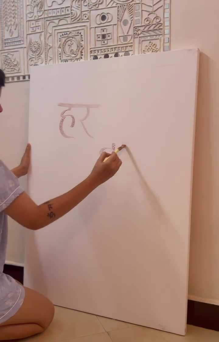 I portray the divine love of Radha and Krishna through vibrant art. This includes large-scale, hand-painted 3D murals on MDF panels that create a sculpted wall feature, and contemporary acrylic paintings on canvas.