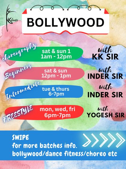 All kinds of dance classes - Salsa, Bachata, Kizomba, Bollywood dance lessons, Jazz, Hip Hop, Kathak, Waacking, plus yoga and dance fitness batches.