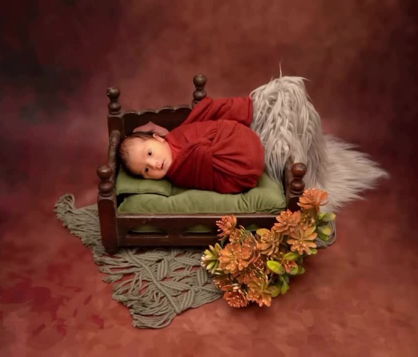 My studio is a treasure trove of tiny beds, cozy baskets, and beautiful props to create magical scenes for your baby. Each setup is carefully designed to be safe, comfortable, and wonderfully photogenic, from rustic themes to floral fantasies.