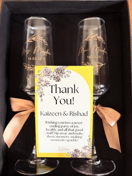 - Glassware comes fancy or personalized - think flutes etched with “Hubby” or “Wifey.”