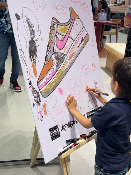 We set up live at your event to paint custom sneakers and apparel on the spot, let guests join in with collaborative art, and handle brand activations with interactive displays.