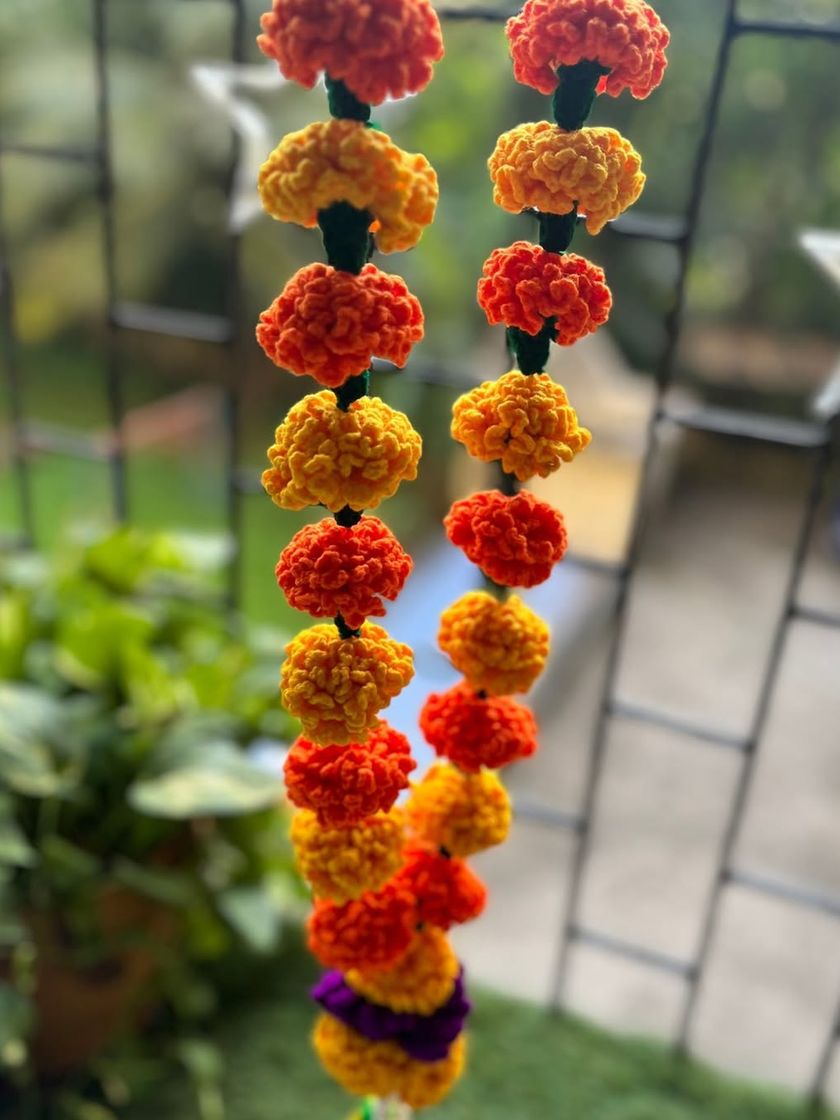 Discover my collection of handmade crochet marigold garlands and door hangings. These Zendu creations are perfect for festivals like Diwali, Dasara, and Gudi Padwa, offering a traditional look that is also washable, reusable, and lasts for years.