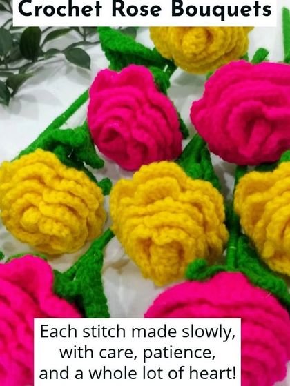 Looking for a unique and lasting gift? My crochet rose bouquets are handmade with intention and are perfect for school functions, corporate events, or as a thoughtful present for a loved one. They never wilt, serving as a beautiful memory forever.