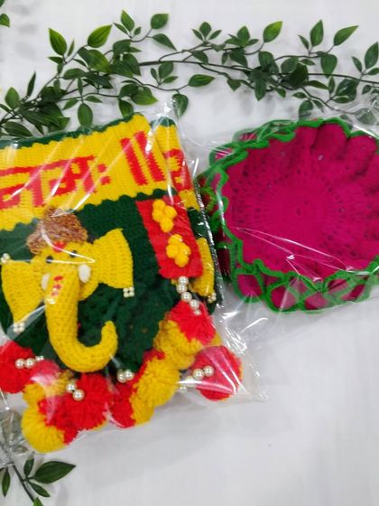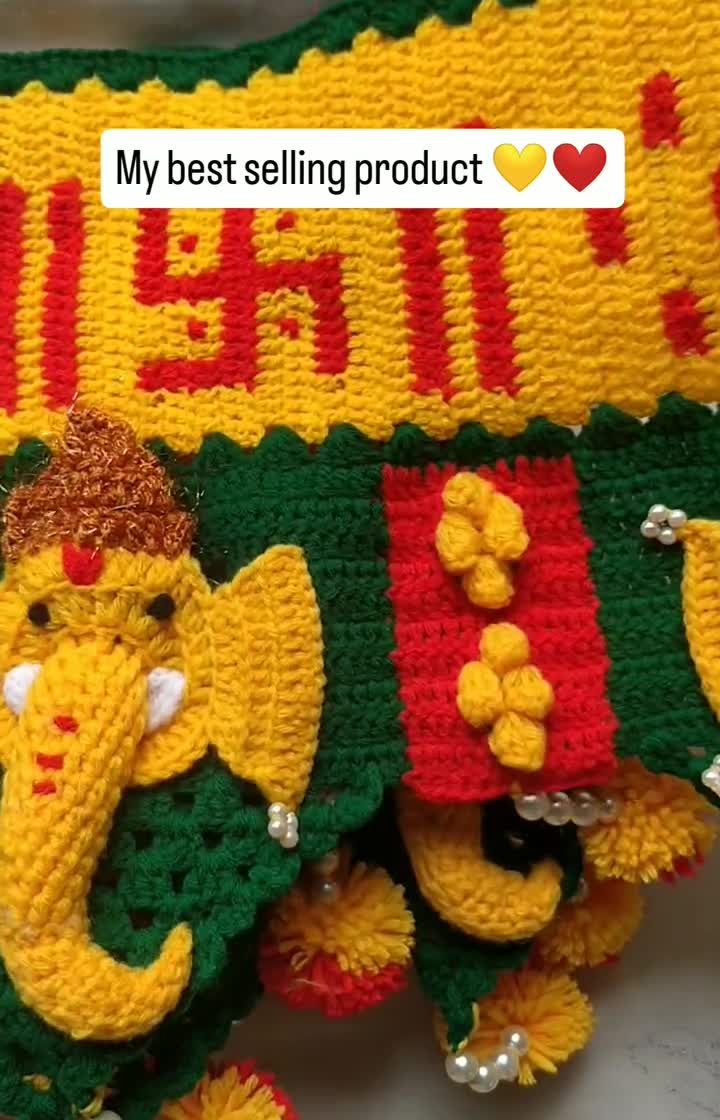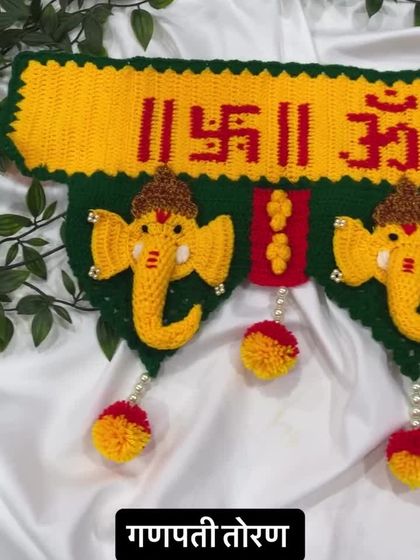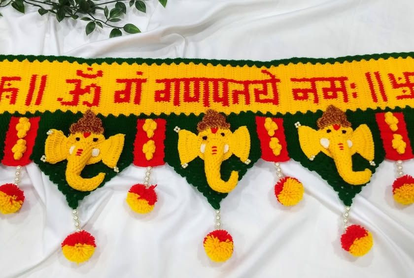 These Ganpati torans are my most requested items, and I pour my heart into each one. They feature detailed crocheted Ganpati faces, auspicious symbols like the Swastik, and sacred text. Made with strong, washable yarn, they are designed to be a cherished part of your festive decorations for years.