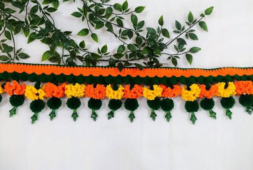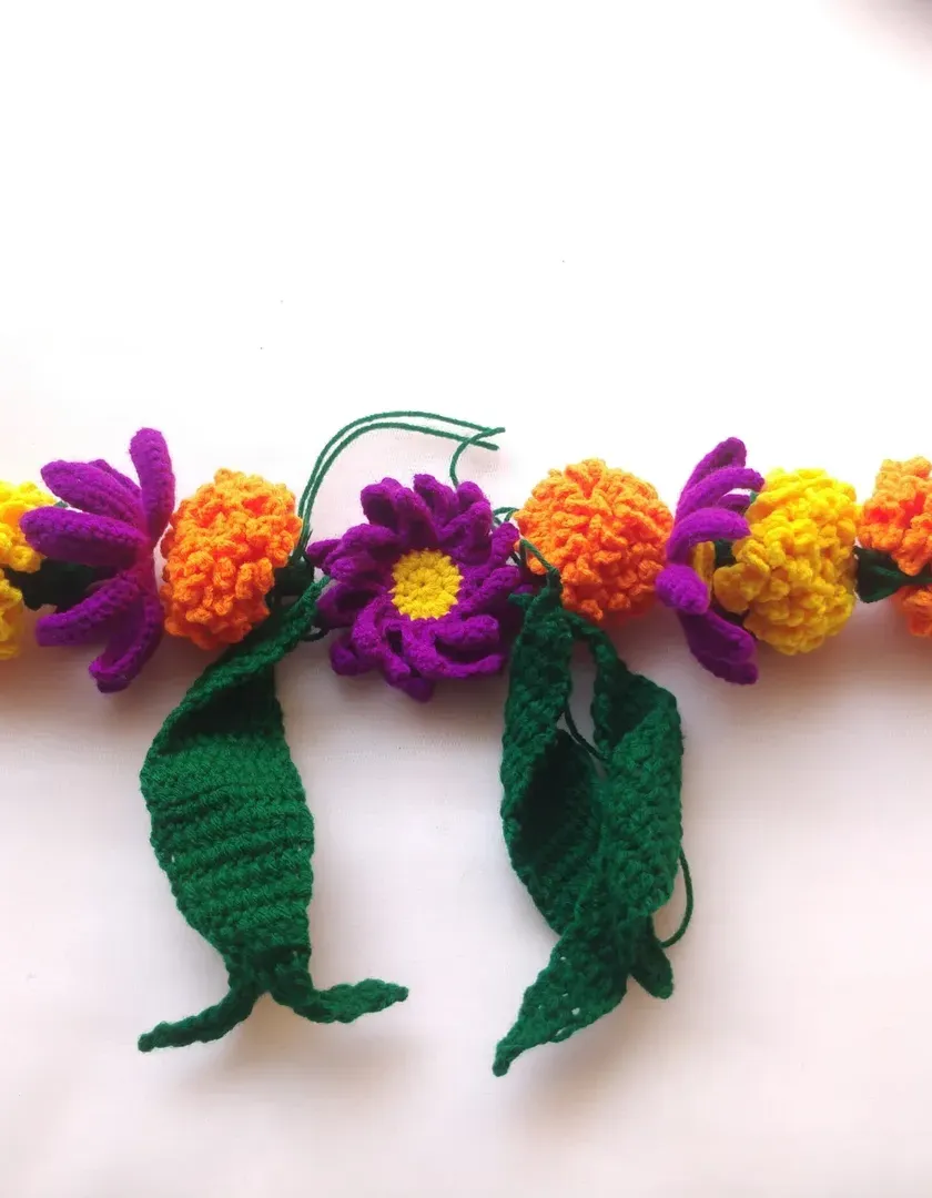 Bring the beauty of flowers to your home with these crocheted floral torans that never wilt. I make designs with marigolds (Zendu), lilies, and other flowers in vibrant colors. Since they are made from acrylic yarn, you can wash and reuse them for every festival.
