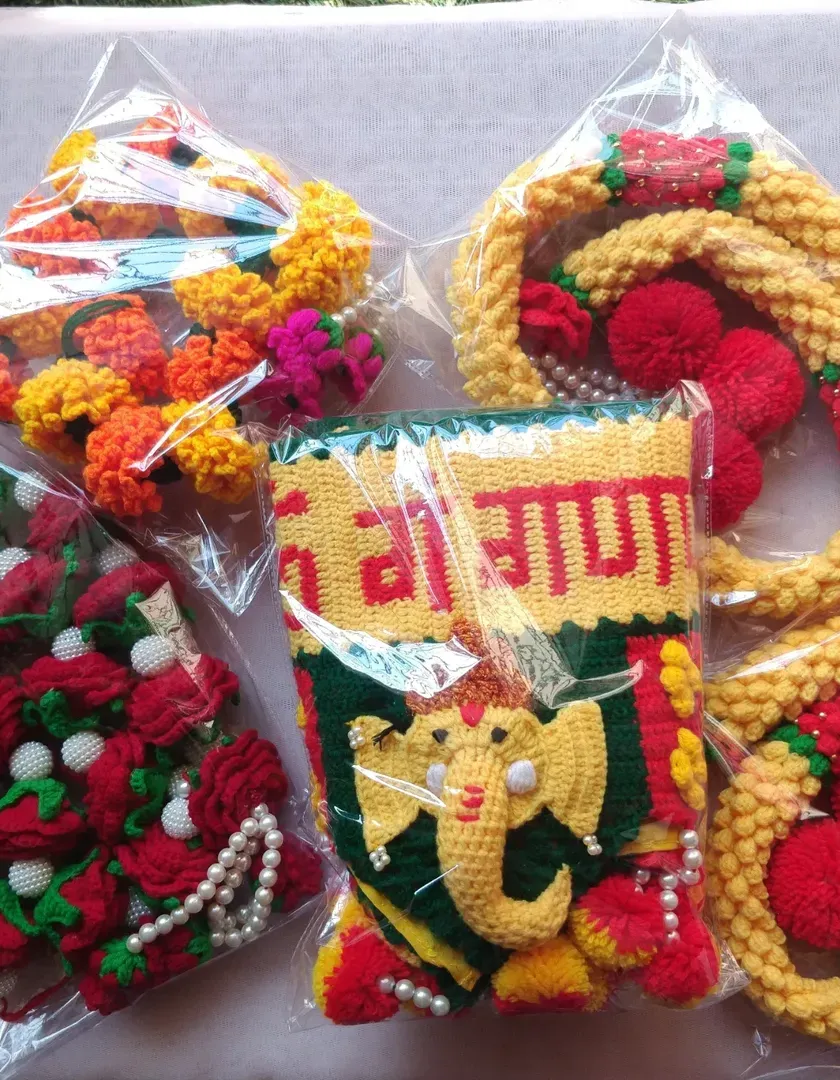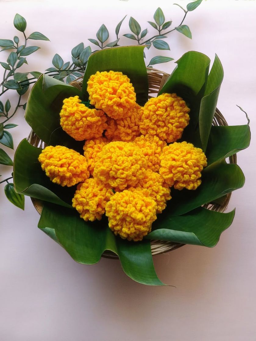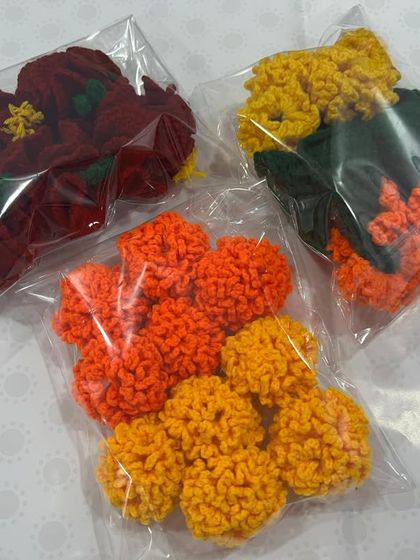 These handmade crochet flowers are a wonderful alternative to fresh flowers for your daily pooja, festive decorations, or for creating beautiful rangoli designs. I make marigolds, hibiscus, and other flowers that are washable, durable, and always in bloom. They are especially loved by customers living abroad.