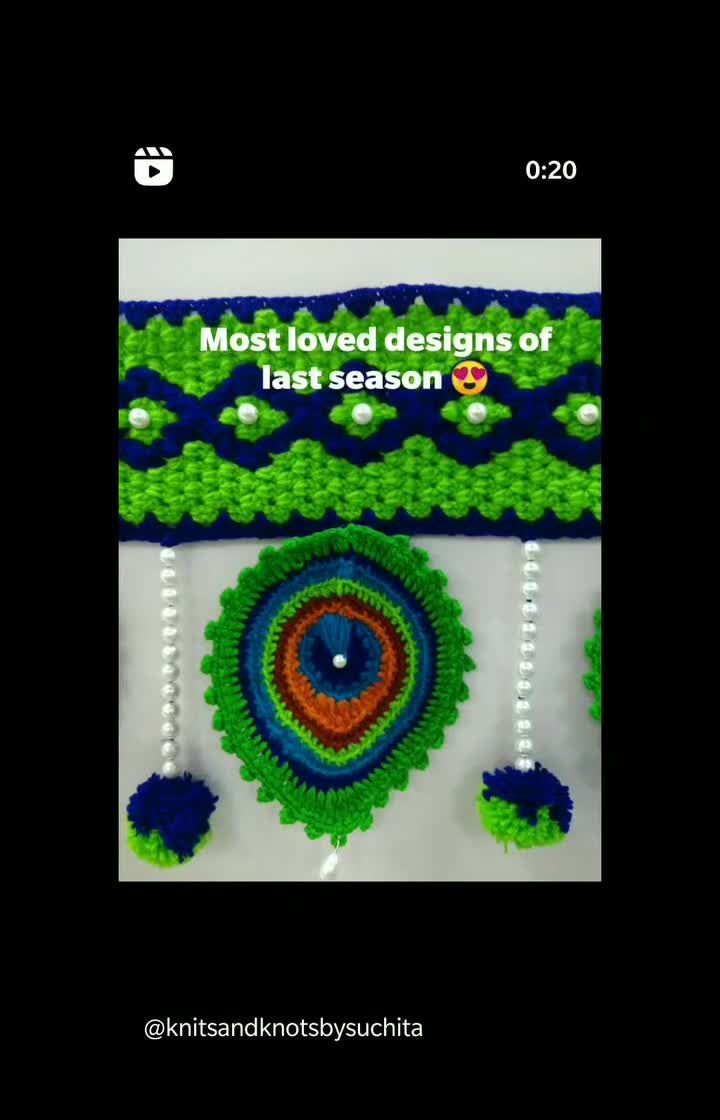 My peacock feather or 'Mor Pankh' torans are designed to add a touch of royalty and vibrancy to your home. I use rich shades of blue and green, accented with pearl beads and pom-poms, to mimic the beauty of a real peacock feather. These are perfect for making a statement.