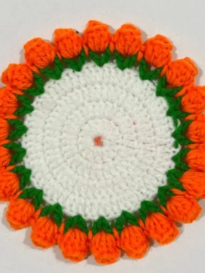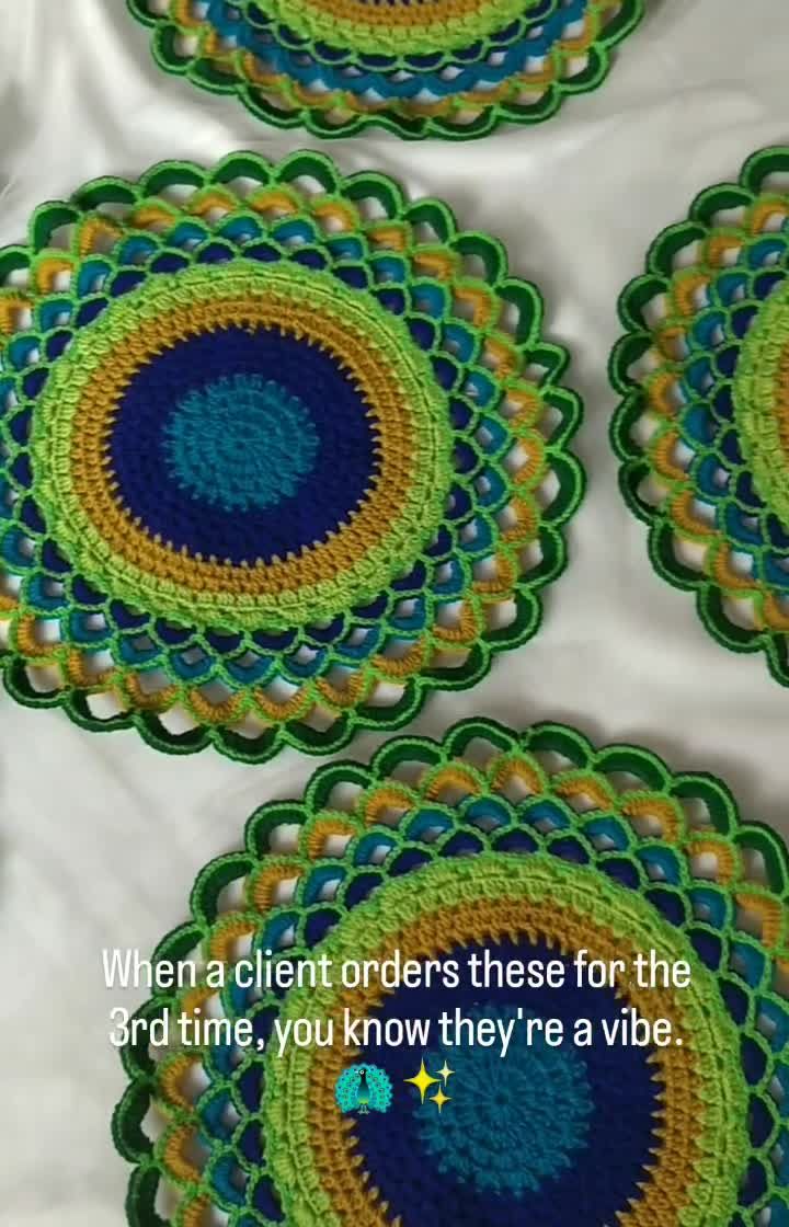 Brighten your dining table, pooja thali, or center table with these multipurpose doilies. I make them in many patterns and color combinations, including peacock themes, evil eye designs, and custom color gradients, all from high-quality, durable yarn.