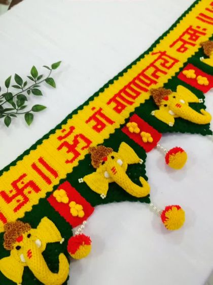 Welcome positivity into your home with my handmade crochet torans. I create designs for festivals like Ganpati, featuring intricate motifs and vibrant colors, as well as elegant peacock designs for year-round beauty.