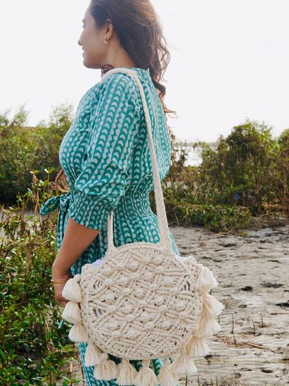 My boho macrame handbags come as clutches, slings, or even round purses. Most bags have a lining and a detachable strap, so you can go hands-free or keep it classic. They actually fit all your essentials - phone, wallet, makeup, even that random scrunchie.