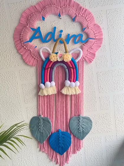My personalized macrame name signs are the crowd favorite. You get to pick the colors, themes (unicorns, animals, whatever you fancy), and size. I make each piece using soft, 100% cotton cords, so it’s safe, eco-friendly, and feels super gentle. The base is solid MDF - sturdy enough for all the cute add-ons.