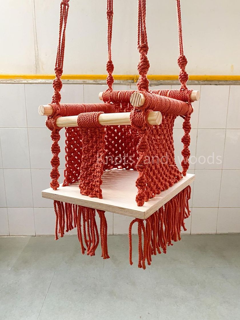 My handmade macrame swings are a favorite for little ones. They are crafted with a sturdy wooden base and soft cotton cords, safely supporting up to 50 kg for endless fun.