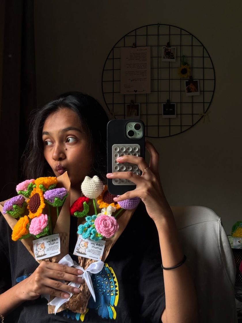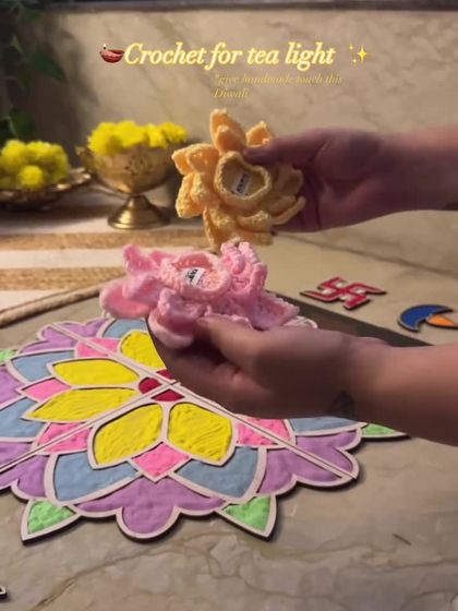 Get your home festival-ready with a handmade touch. I create reusable crochet marigold garlands (Genda Phool Mala) and beautiful Lotus tea light holders for that perfect desi vatavaran. These pieces are perfect for Diwali, Ganesh Chaturthi, or any celebration where you want a unique, traditional vibe.