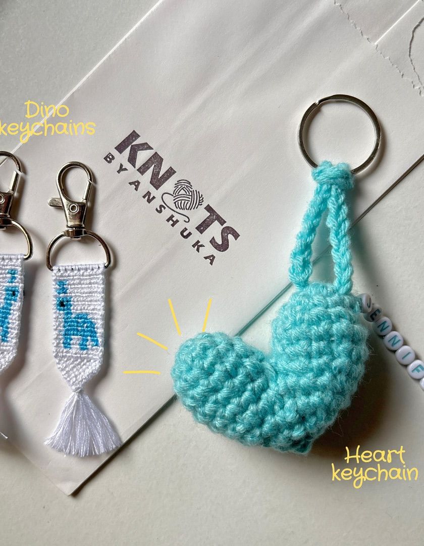 The perfect small thing to treat yourself or a friend. I make all kinds of custom keychains and bracelets, from cute animals and hearts to personalized names and inside jokes. Just tell me your idea and I'll knot it into reality.
