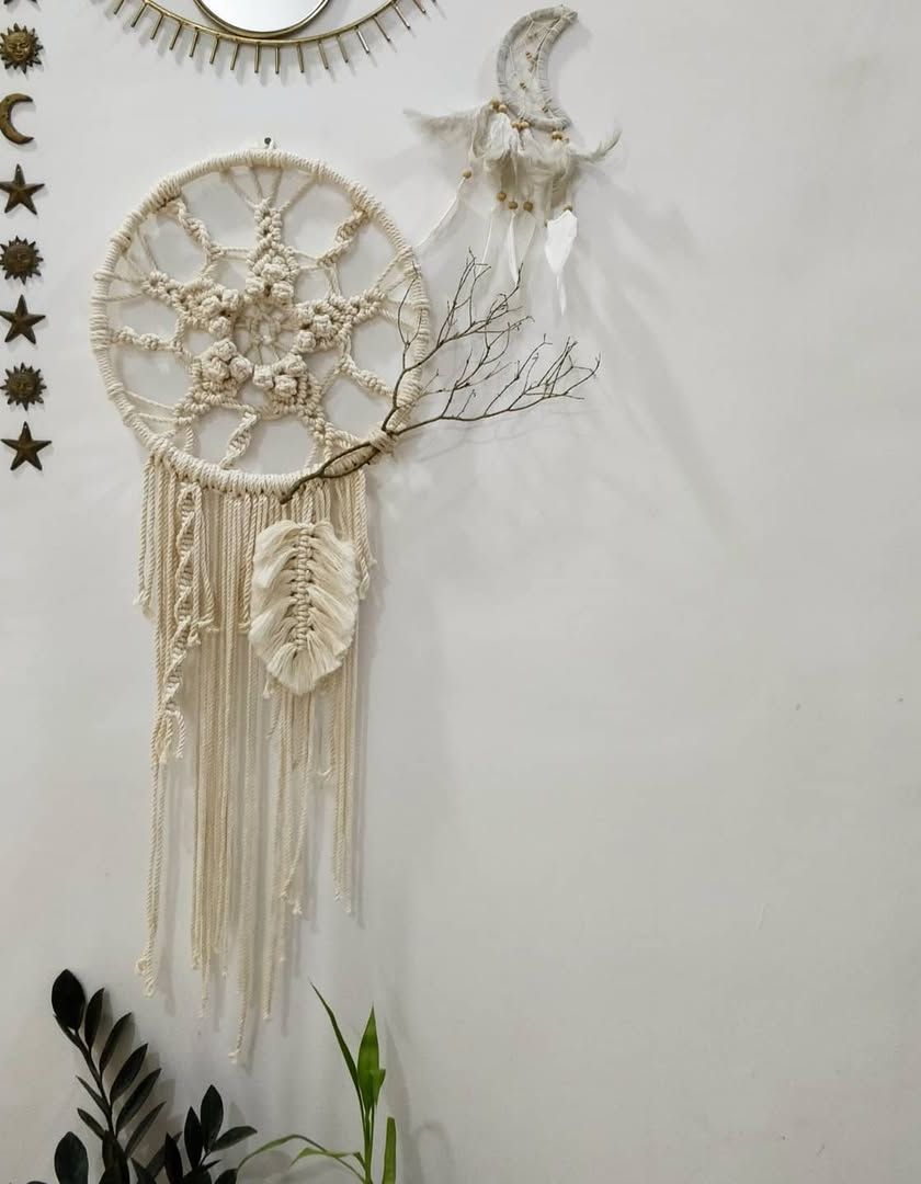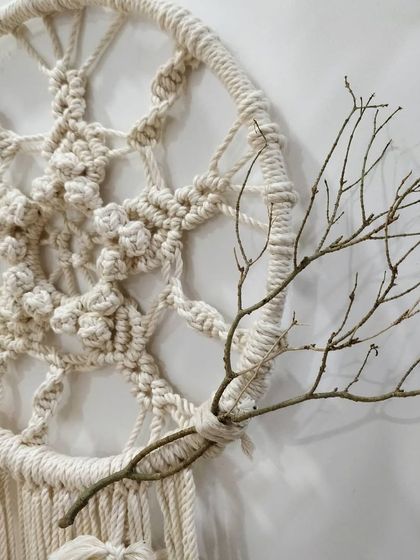 I love making these pieces that bring a bit of rustic, bohemian charm to your walls. Each one is knotted by hand, often using natural elements like twigs, to create something truly unique for your space.