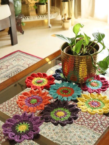 - Seasonal crochet coasters shaped like flowers, perfect for chai or coffee breaks.