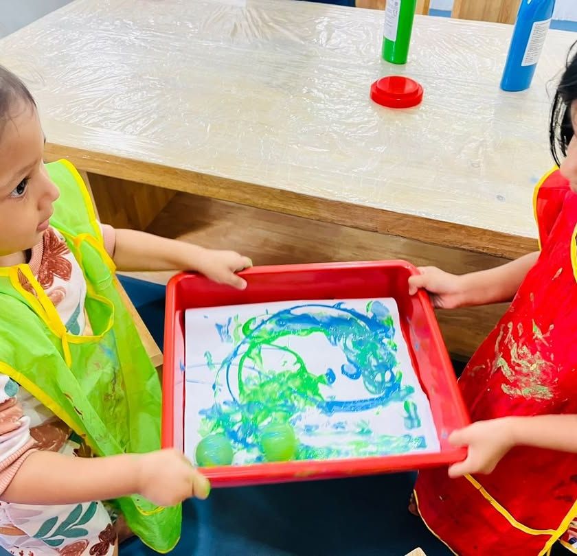 Art is a daily celebration of creativity and sensory exploration. We use everything from paintbrushes and flowers to toy cars and our own hands, focusing on the process of creation, not just the final product.