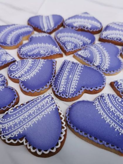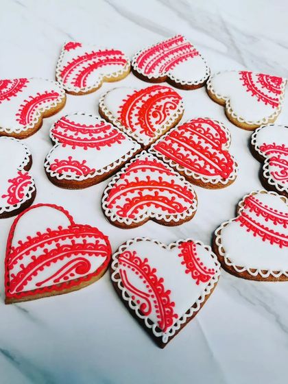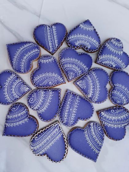 We specialize in creating intricately decorated sugar cookies that serve as edible art pieces. Each cookie is hand-painted and detailed with custom designs ranging from school emblems to themed patterns for special occasions like Valentine's Day and anniversaries.
