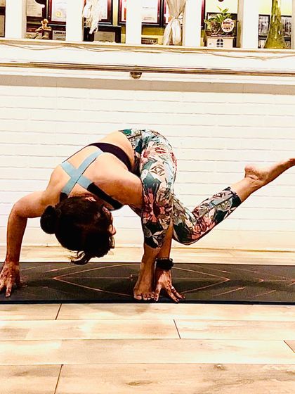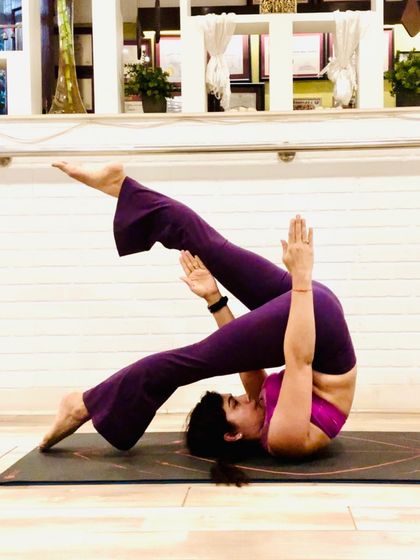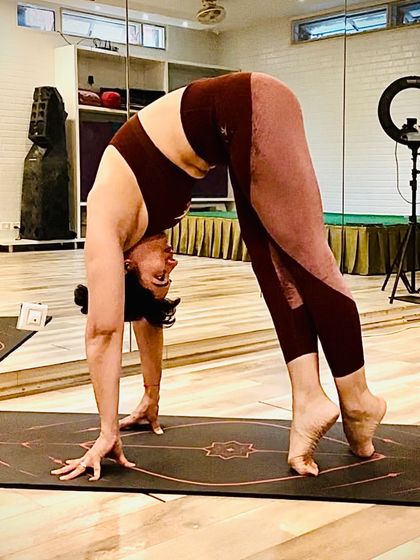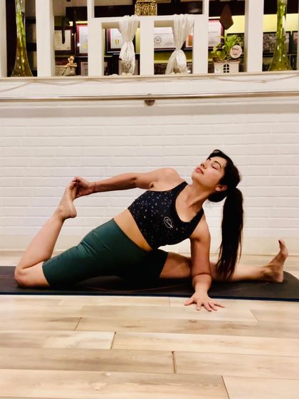 Hey, I’m Komal – 17 years in Gurgaon, running this studio that’s more than just yoga mats and poses. My journey kicked off with ‘Om Gan Ganpataye Namaha’ and that’s still my anchor, my ‘antargyan’ (inner wisdom). Dad taught me to show up, pind di zameen (village roots) taught me to stay grounded. Sometimes I’m in a field with my sister, sometimes skydiving in Dubai – it’s all gratitude and living free, inside and out.