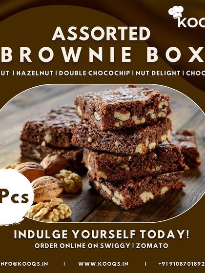 - Brownies: The assorted brownie box online is for anyone who’s got a sweet craving. Five fudgy flavors in every box - walnut, hazelnut, double chocochip, nut delight, choco 2x.