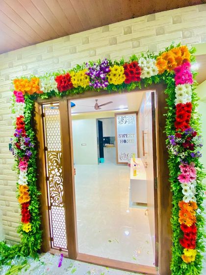 The festive feeling should start right at your doorstep. I design beautiful floral arrangements for home entrances, from simple and elegant touches to grand floral arches, creating an auspicious welcome for Bappa and your guests.