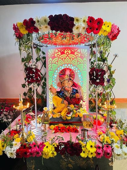 My floral decoration services extend beyond Ganpati setups. I also create beautiful garlands and arrangements for other deities and festive occasions, ensuring every celebration is adorned with fresh, vibrant flowers.